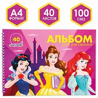 Альбом для рисования А4, 40 листов, "Ариэль", Принцессы