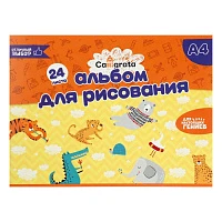 Альбом для рисования А4, 24 листа на скрепке "Африка", обложка картон 190-215 г/м2, блок 100 г/м2, МИКС