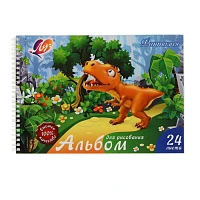 Альбом для рисования А4, 24 листа на гребне с перфорацией "Луч" Динозавр, блок 100 г/м2