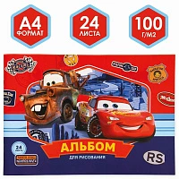 Альбом для рисования А4, 24 листа на скрепке "Тачки", обложка мелованный картон, блок 100 г/м?