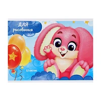 Альбом для рисунков А5, 12 листов на скрепке "Зайка", бумажная обложка, блок 100 г/м?