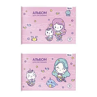 Альбом для рисования 12 л. А4 скреп. CUTE MERMAIDS мел. карт. спл. Уф-лак