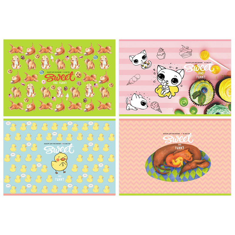 Альбом для рисования 16л., А4, на скрепке BG "Веселые зверюшки", эконом