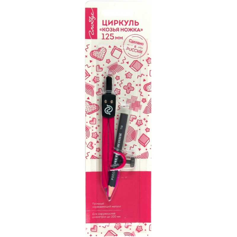 Циркуль Глобус ЦНК-40БР Козья ножка, 125 мм,с карандашом,блистер, розовый