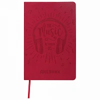Дневник для музыкальной школы 48 л., обложка кожзам (лайт), термотиснение, BRAUBERG, красный, 105497