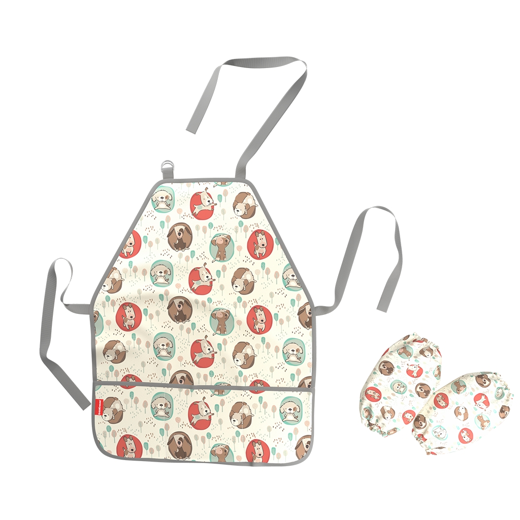 Фартук для детского творчества с нарукавниками. Надежно защитит одежду и руки ребенка во время занятий творчеством. Крепление на шее с возможностью регулировки. Изготовлен из 100% полиэстера с водоотталкивающей пропиткой. Легкая ткань быстро отстирывается теплой водой и мылом, после стирки сохраняет первоначальный вид. Фартук дополнен тремя кармашками и нарукавниками. Размер фартука 55х43 см, рост 120-164 см. Размер нарукавников 26х12 см.