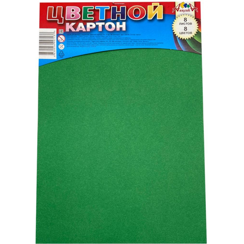 Картон цветной А4, 8 листов, 8 цветов, на скобе в ассортименте С2770