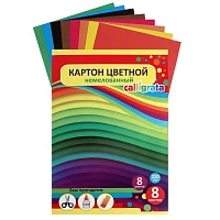 Картон цветной А4, 8 листов, 8 цветов, Calligrata, немелованный, в папке