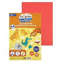 Картон цветной двусторонний А4, тонированный в массе, 10 листов, 180 г/м2, красный