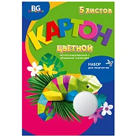 Картон цветной гофрированный А4, BG "Tropic", 5л. 5цв., папка