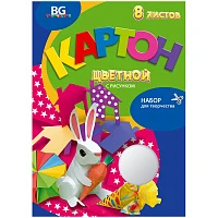 Картон цветной А4 BG "Заяц" 8л., немелованный, термоусадочная упаковка