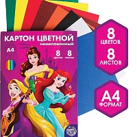 Картон цветной немелованный «Принцессы Дисней», А4, 8 л., 8 цв., Disney, 220 г/м2