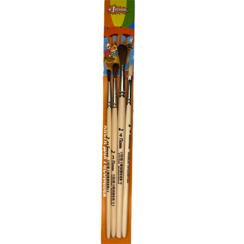 Кисть №1 School Шустрики набор пони кр.№3,№4,белка круг.№2,щетина плоск. №4