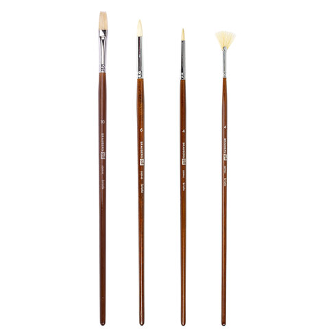 Кисти художественные BRAUBERG ART, набор 4 шт. (щетина круглая № 4, 6, плоская № 10, веерная № 4), 200945