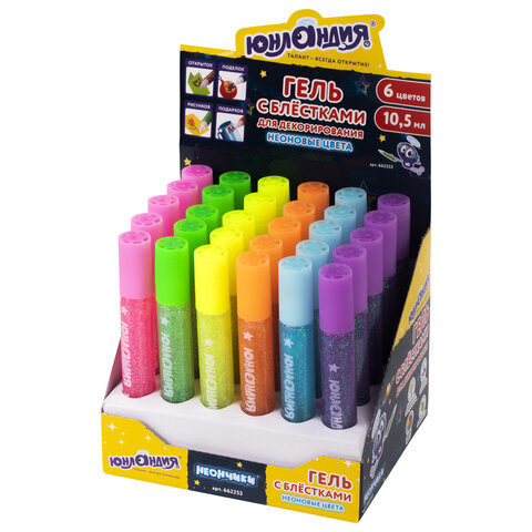 Гель с блестками ЮНЛАНДИЯ, НЕОН, 10,5 мл, цвета ассорти, в дисплее, 662253