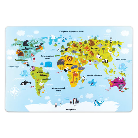 Настольное покрытие для письма и творчества ПИФАГОР, размер А3, пластик, "Карта мира", 227248