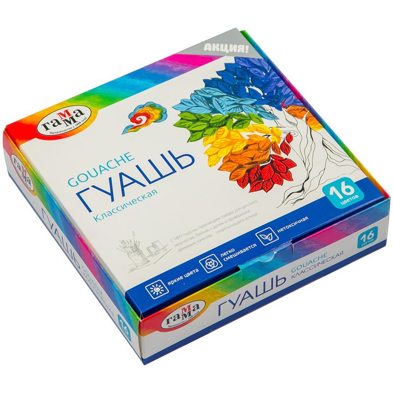 Гуашь Гамма "Классическая", 16 цветов, 20мл, картон 22103016