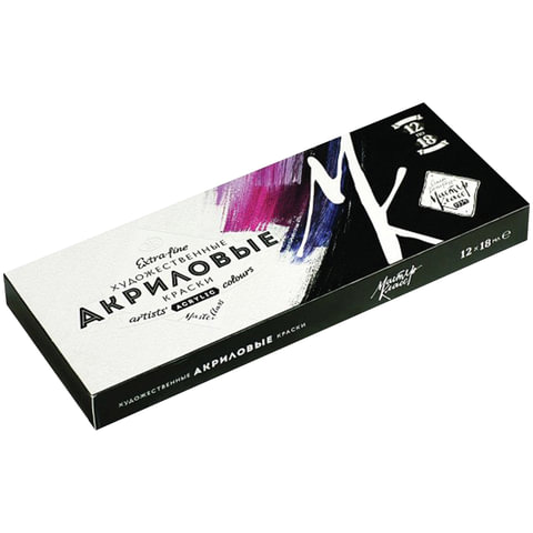 Краски акриловые художественные "Мастер-класс", НАБОР 12 цветов по 18 мл, в тубах, 12341417