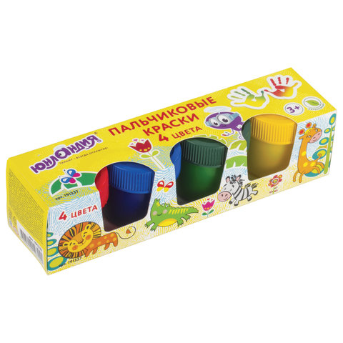 Краски пальчиковые ЮНЛАНДИЯ "САФАРИ", 4 цвета по 35 мл, в баночках, ВЫСШЕЕ КАЧЕСТВО, 191337
