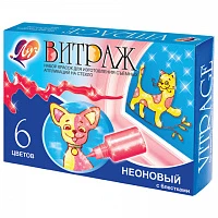 Краски по стеклу (витражные) ЛУЧ "Витраж неоновый с блестками", 6 цветов по 20 мл, шаблоны, 17С 1159-08