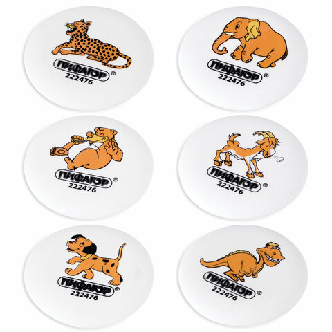 Резинка стирательная ПИФАГОР, круглая, диаметр 55 мм, белая, с картинкой зверушки, в пакете, 222476