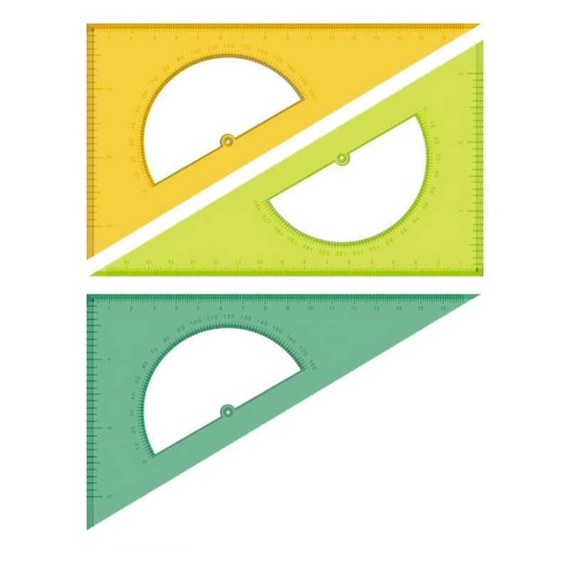 Треугольник пластмассовый Стамм с транспортиром 30 градусов 16 см для чертежных работ. Флуоресцентные цвета: розовый, зеленый, синий, желтый.