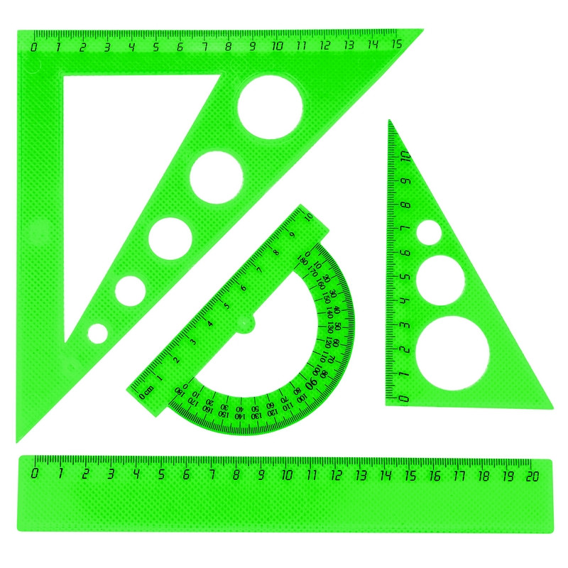 Набор средний: линейка 20см, угольники 16см и 10см, трансп-р 10см,цветасс.