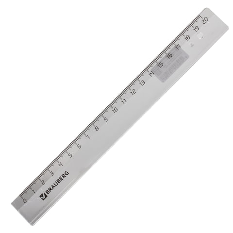 Линейка пластиковая 20 см, BRAUBERG, прозрачная, бесцветная, 210606