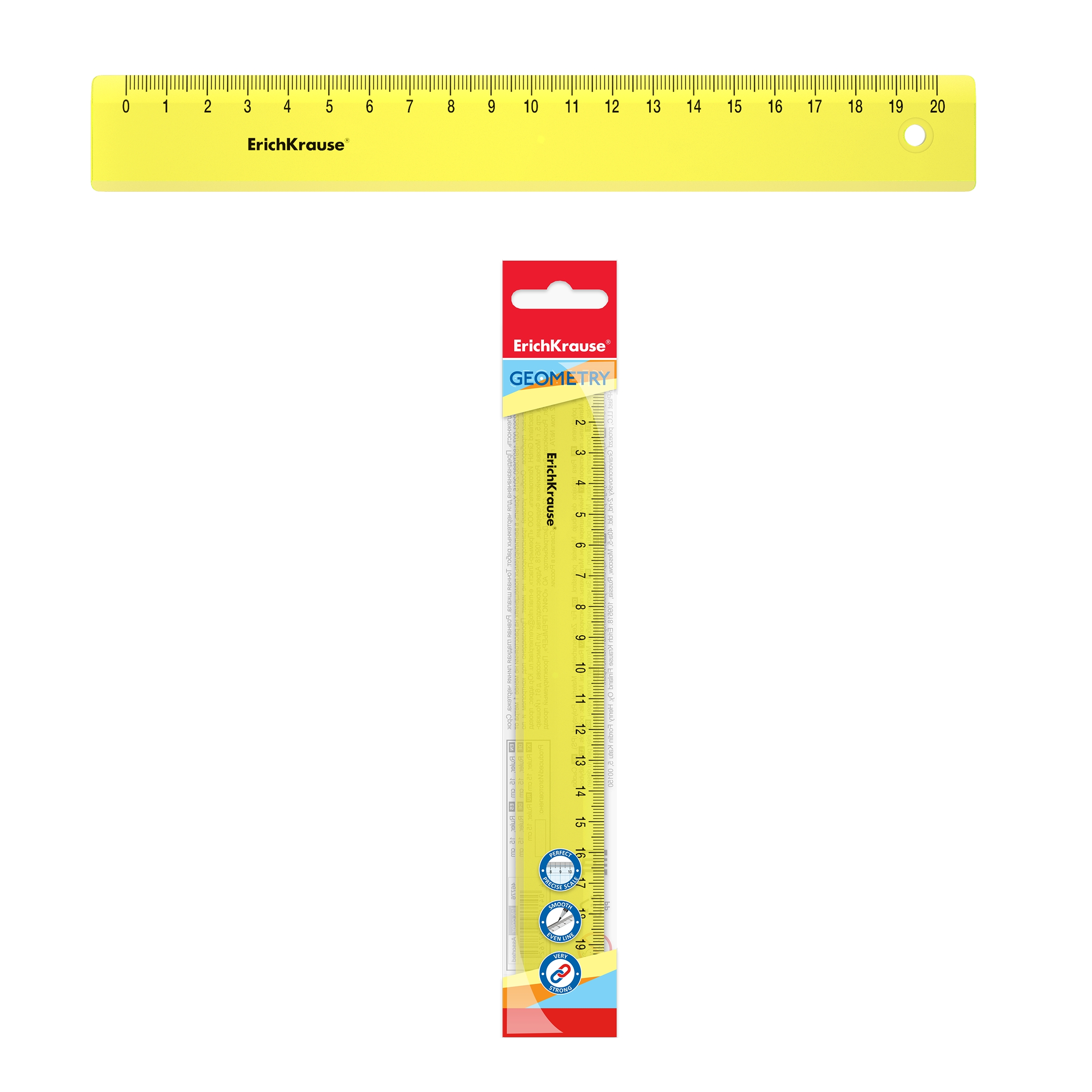 Линейка из высококачественного пластика. Точная миллиметровая шкала; длина разметки составляет 20 см. Прозрачный неоновый желтый цвет.