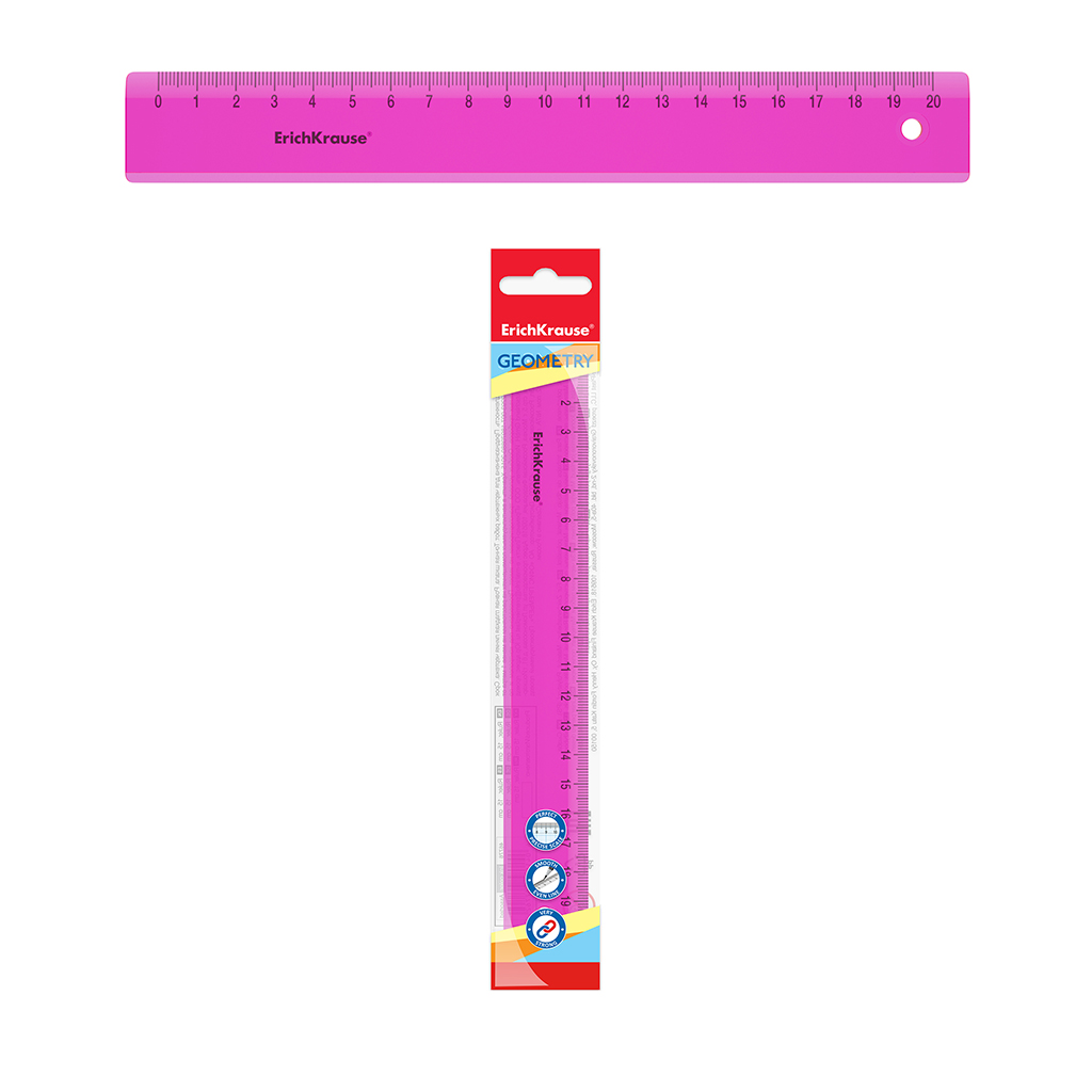 Линейка пластиковая ErichKrause® Neon, 20см, розовый, в флоупаке