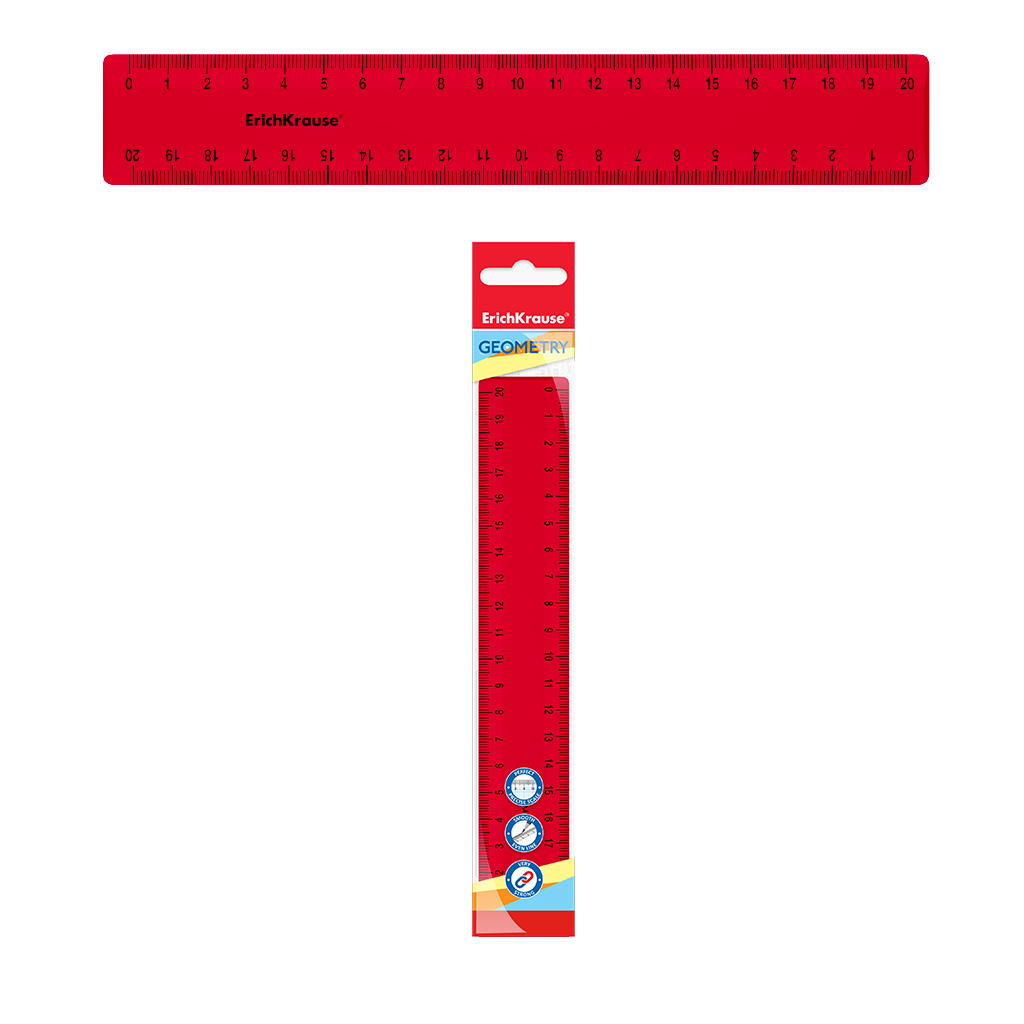 Линейка пластиковая ErichKrause® Classic, 20см, красный, во флоупаке