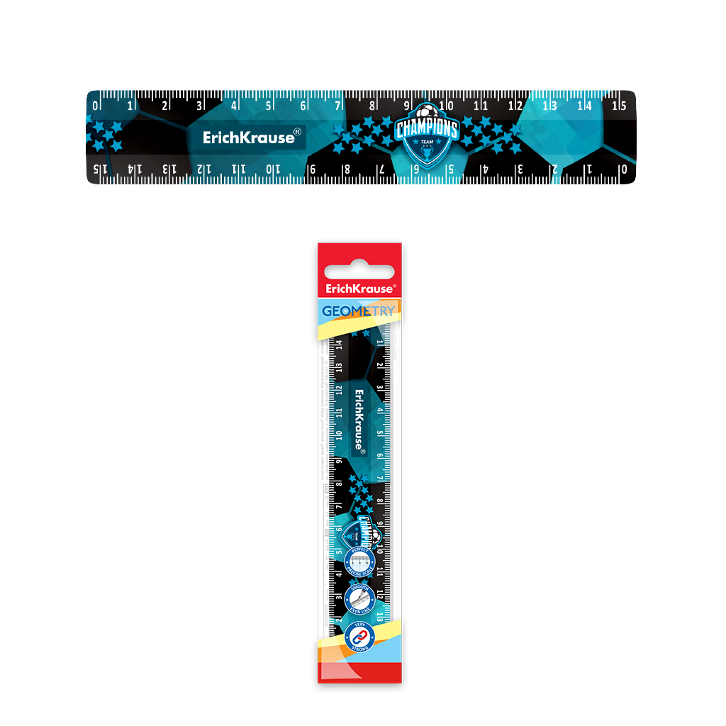 Линейка пластиковая ErichKrause® Champions, 15см, во флоупаке