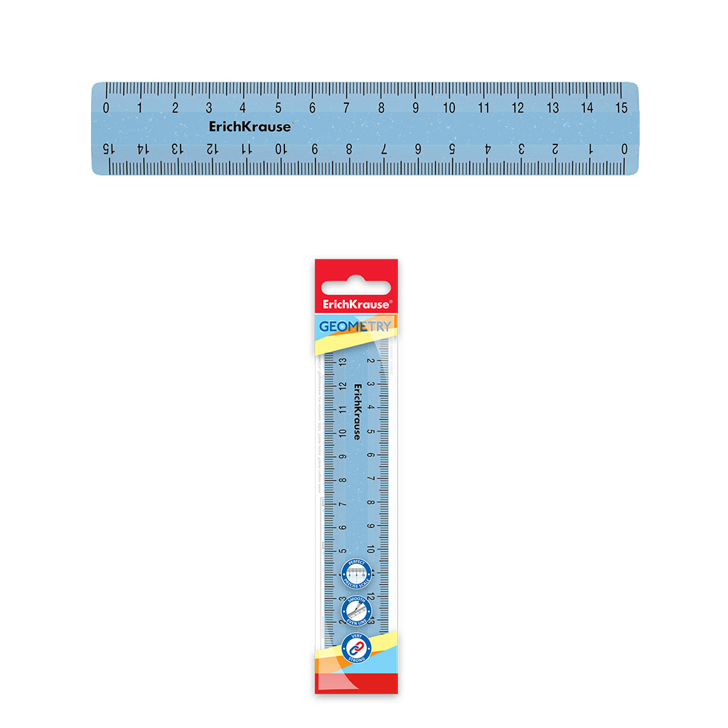 Линейка пластиковая ErichKrause® Glitter, 15см, голубой, во флоупаке