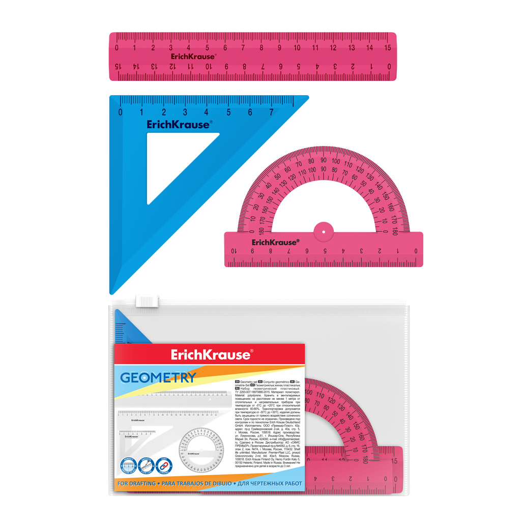 Набор геометрический малый пластиковый ErichKrause® Bubble Gum, (линейка, угольник, транспортир), ассорти из 2 цветов, в zip-пакете