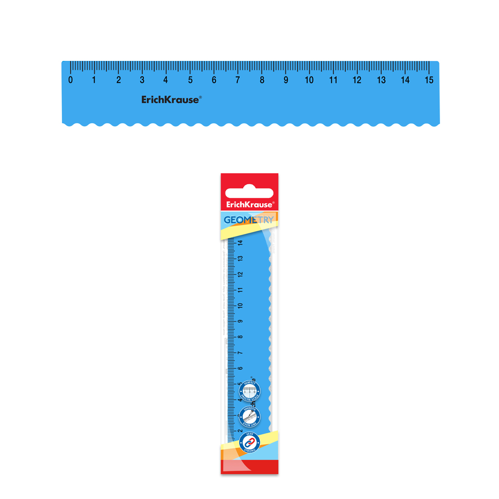 Линейка с волнистым краем гибкая пластиковая Erich Krause® Bubble Gum, 15см, голубая, во флоупаке