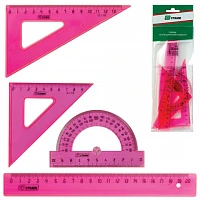 Набор чертежный большой СТАММ "Neon Crystal" (линейка 30 см, треугольник 2 шт., транспортир), цвет ассорти, НГ06