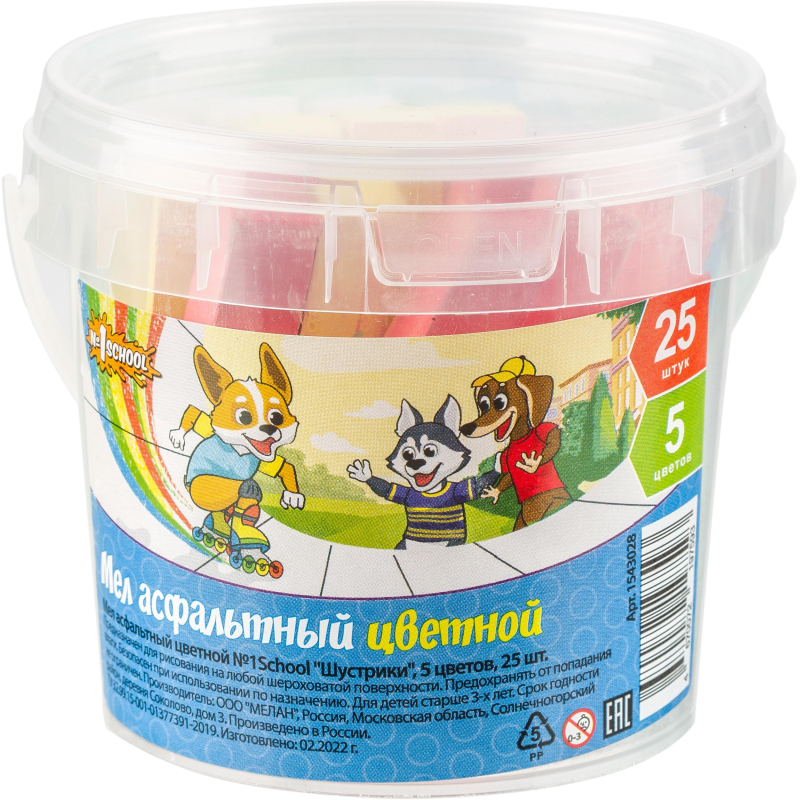 Мел асфальтный №1 School Шустрики 5цв. 25 шт. пласт. Ведро наб