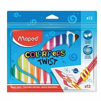 Восковые мелки MAPED (Франция) "Color'peps Twist", 12 цветов, выкручивающиеся в пластиковом корпусе, 860612