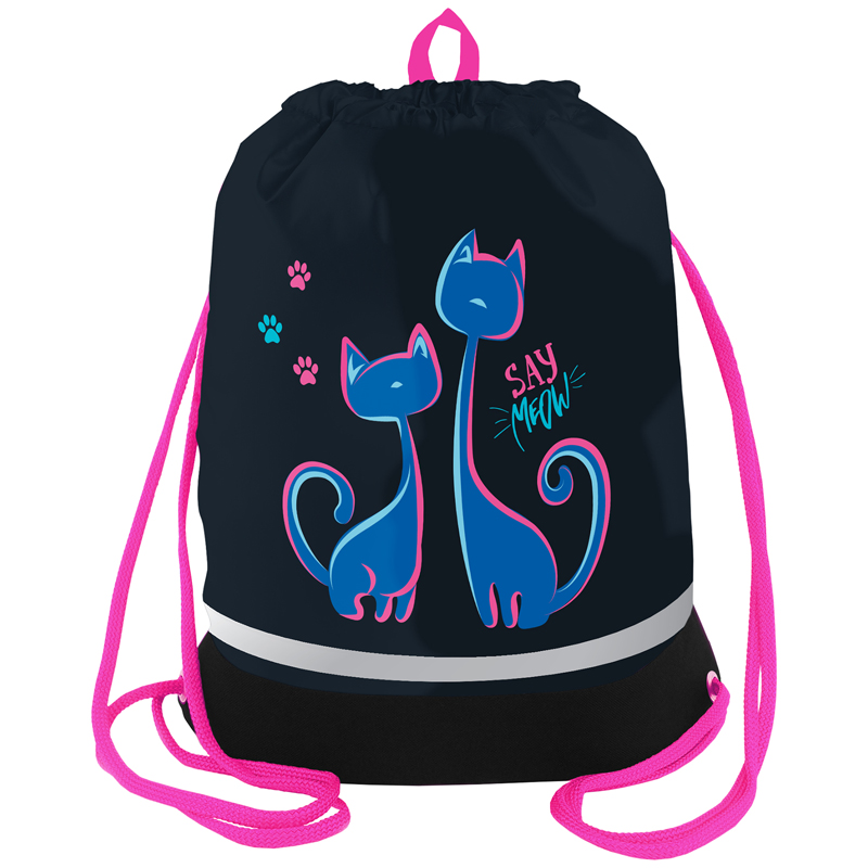 Мешок для обуви 1 отделение Berlingo "Say Meow", 510*400мм, расшир. дно, светоотражающая лента, карман на молнии
