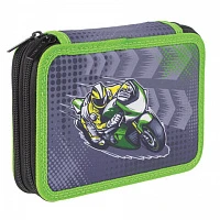 Пенал без наполнения BRAUBERG, 2 отделения, ткань, 20х14 см, "Motorcycle", 229288