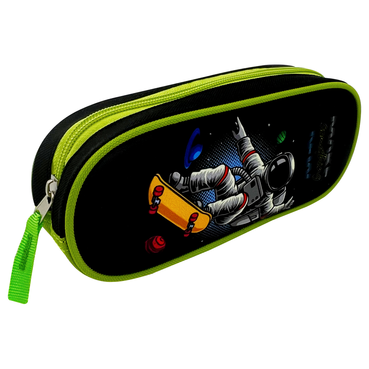 Удобный и яркий школьный пенал для хранения письменных и чертежных принадлежностей.