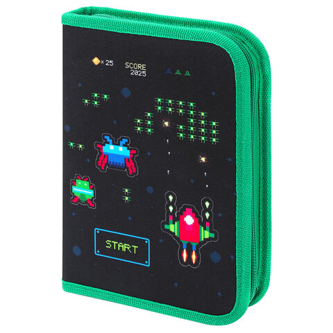 Пенал BRAUBERG с наполнением, 1 отделение, 1 откидная планка, 24 предмета, 21х14 см, "Space strike", 273534