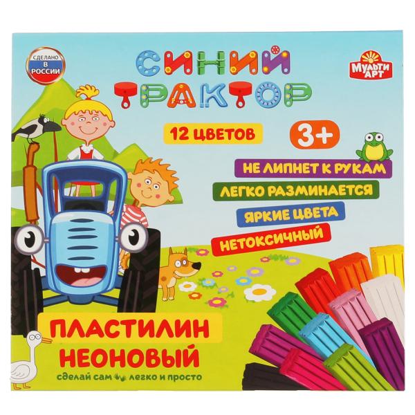 Пластилин неон СИНИЙ ТРАКТОР 12 цв (180 г) MultiArt