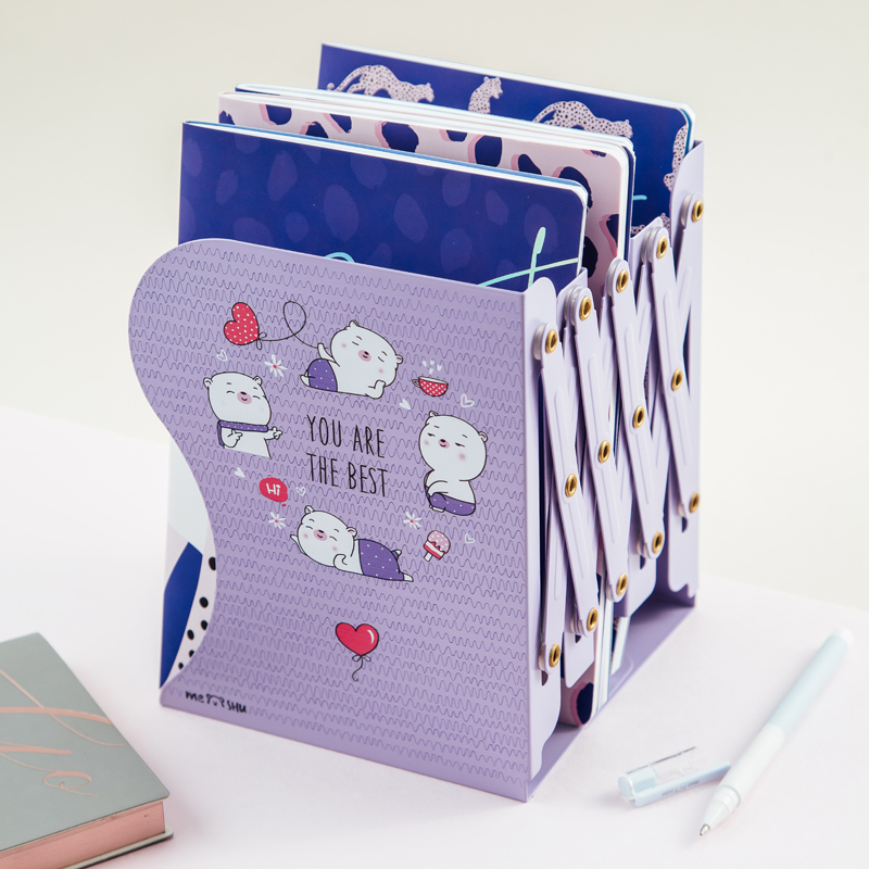Подставка для книг MESHU "Beary Beary", 3 отделения, раздвижная
