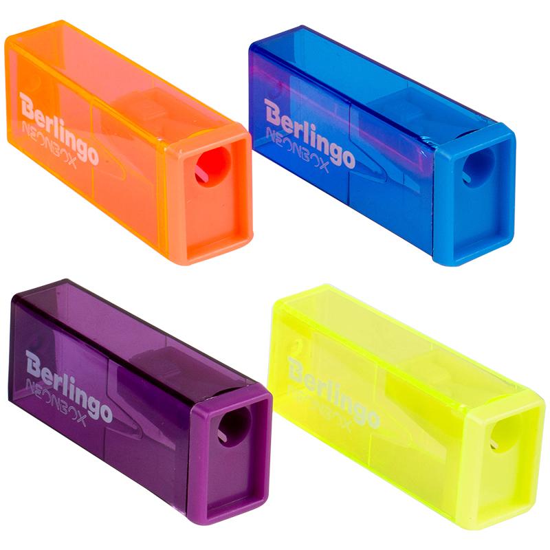 Точилка пластиковая Berlingo "NeonBox", 1 отверстие, контейнер, ассорти BBp_15008