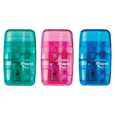 Точилка MAPED "Connect", 2 отверстия, со стират. резинкой, с контейнером, тонированная ассорти, 049211