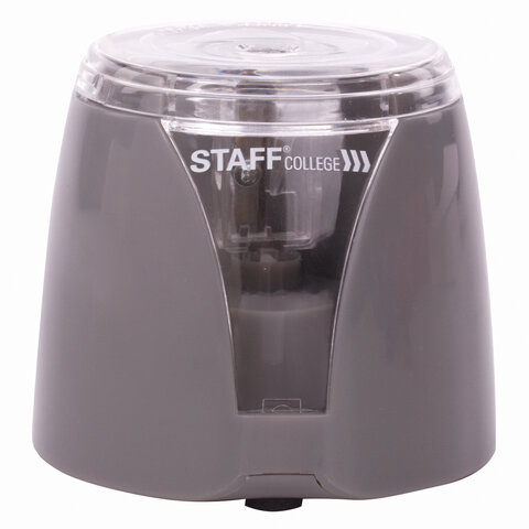 Электрическая точилка STAFF "College" с открывающимся контейнером для сбора стружки и прямым лезвием. Предназначена для затачивания деревянных и пластиковых карандашей.