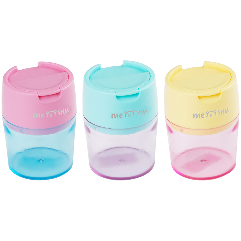 Точилка MESHU с двумя отверстиями. Корпус выполнен в приятных пастельных оттенках. Лезвие из высокопрочной стали и контейнер большого объема позволят осуществлять заточку легко и аккуратно.