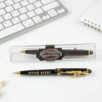 Ручка с колпачком и нанесением soft-touch «Золотому учителю», синяя паста 0.7 мм