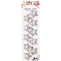 Заколки для волос НАБОР 10 шт., 3 см, клик-клак, звездочки, глянцевый, серебристый, MONTE VITA (МОНТЕ ВИТА), 457083